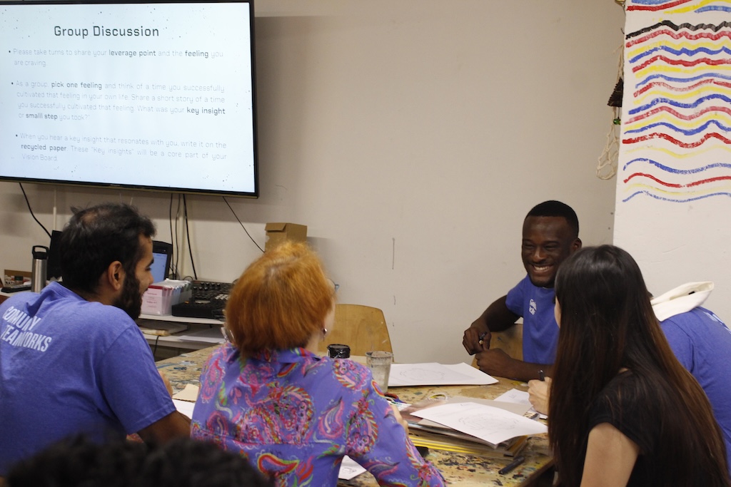 Kaisha also used the “Onion Peeling” exercise to help participants dig past surface-level desires to uncover or rediscover core values. Participants were then asked to create a Vision Board to represent their thoughts when they were thinking by themselves with their eyes closed.