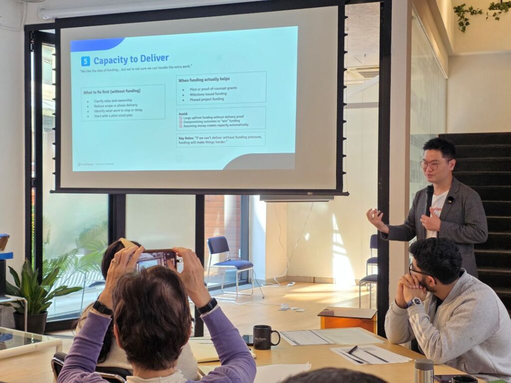 For this purpose, the FundFluent team prepared a “funding readiness scorecard” for the participants to use as a self-check mechanism to understand their current situation, taking into account budget planning, cash pressure, existing systems and habits, governance, and compliance etc.