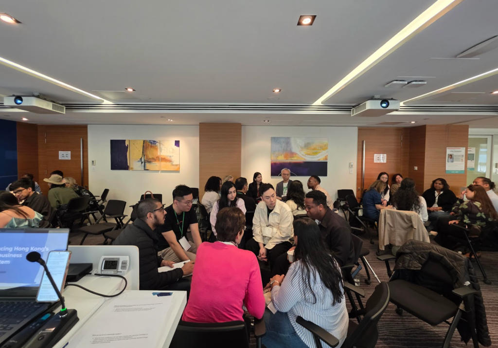 Participants were divided into mixed stakeholder groups — including mentors, partners, sponsors, and community members — to discuss how this FSI ecosystem could become even more resourceful, inclusive, and supportive for ethnically diverse entrepreneurs in Hong Kong.