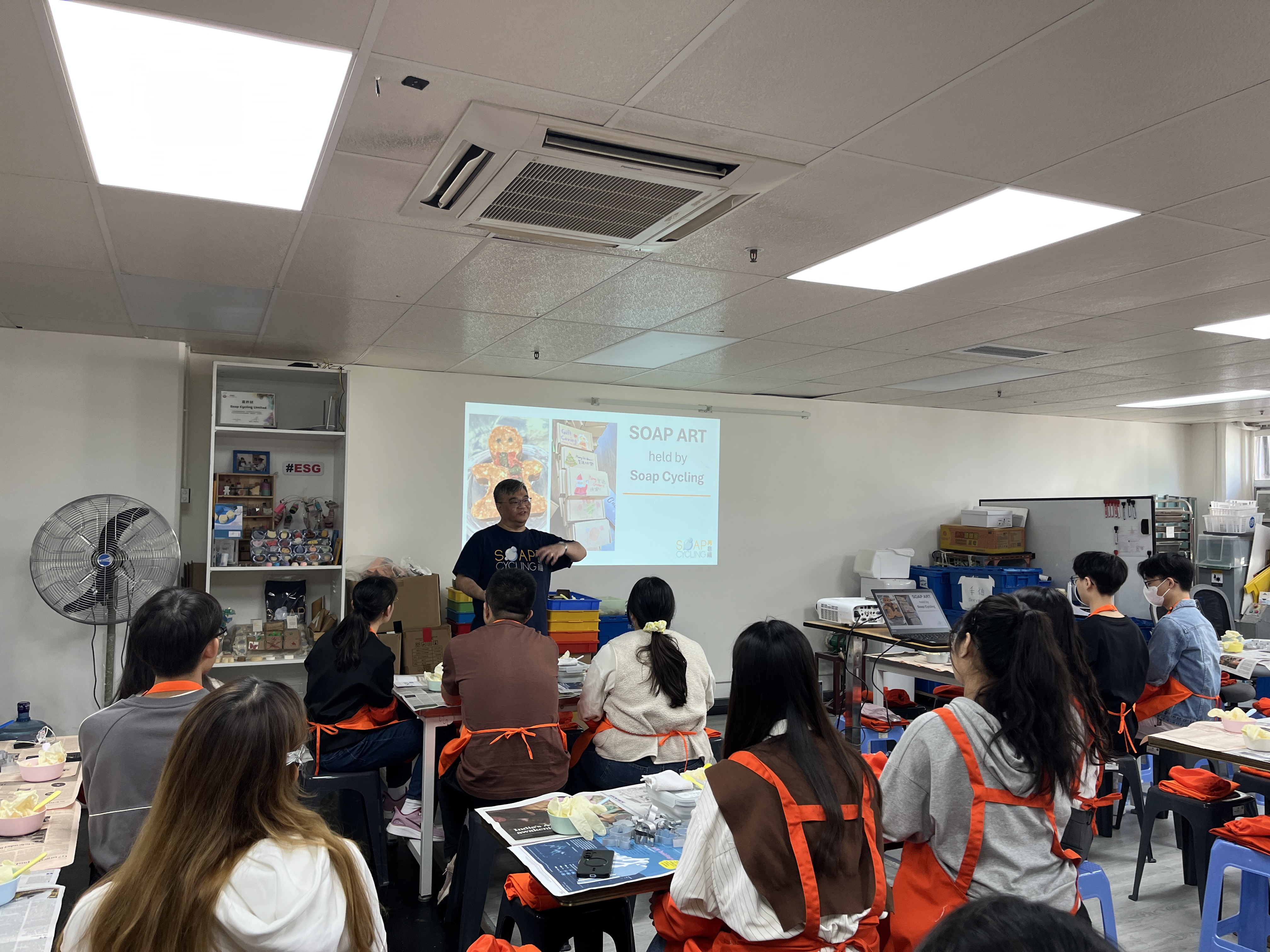 Kickstarting the workshop, Ronald Ho, Soap Cycling’s General Manager, shared the organization’s mission and mission with the HSBC Scholars: “Soap Cycling was founded to collect lightly used soap bars from hotels, recycle them into new soap bars, and distribute these precious hygiene resources to communities in need in Hong Kong and beyond.”